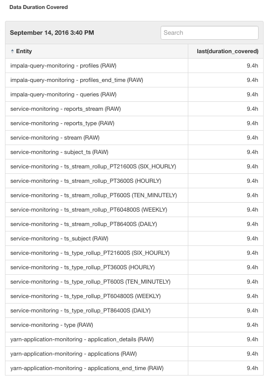 To view the Cloudera Manager Service Monitor data storage granularities, go to and scroll down to see the Data Duration Covered table to see the earliest available data points for each level of granularity. The