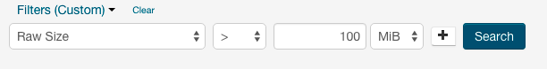 You can use filters to limit the display and to search for files. To apply filters to the directory usage report, click the Filters drop-down menu near the top of the page and select one of the following preconfigured filters:
