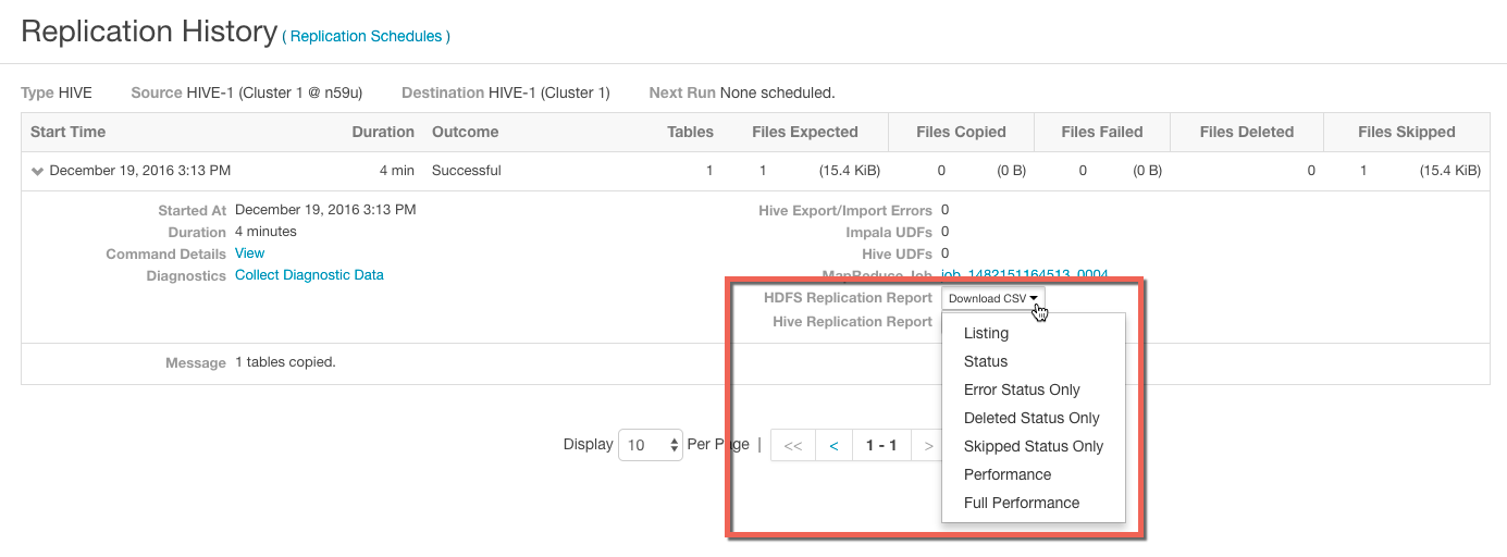 Note: The option to download the HDFS Replication Report might not appear if the HDFS phase of the