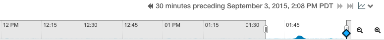 Depending on what page the Time Line appears, you can select a point in time or a time range. There are two ways to look at information about your cluster—its current status and health, or its status and health at some point (or during some interval) in the past. When you are looking at a point in the past, some functions may not be available. For example, on a Service Status page, the Actions menu (where you can take actions like stopping, starting, or restarting services or roles) is accessible only when you are looking at Current status.