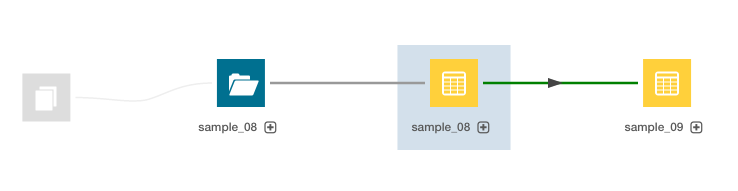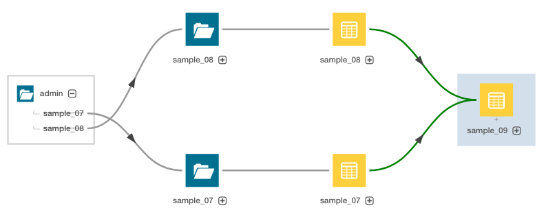 Lineage diagram of the sample_09 table filtering deleted items only.