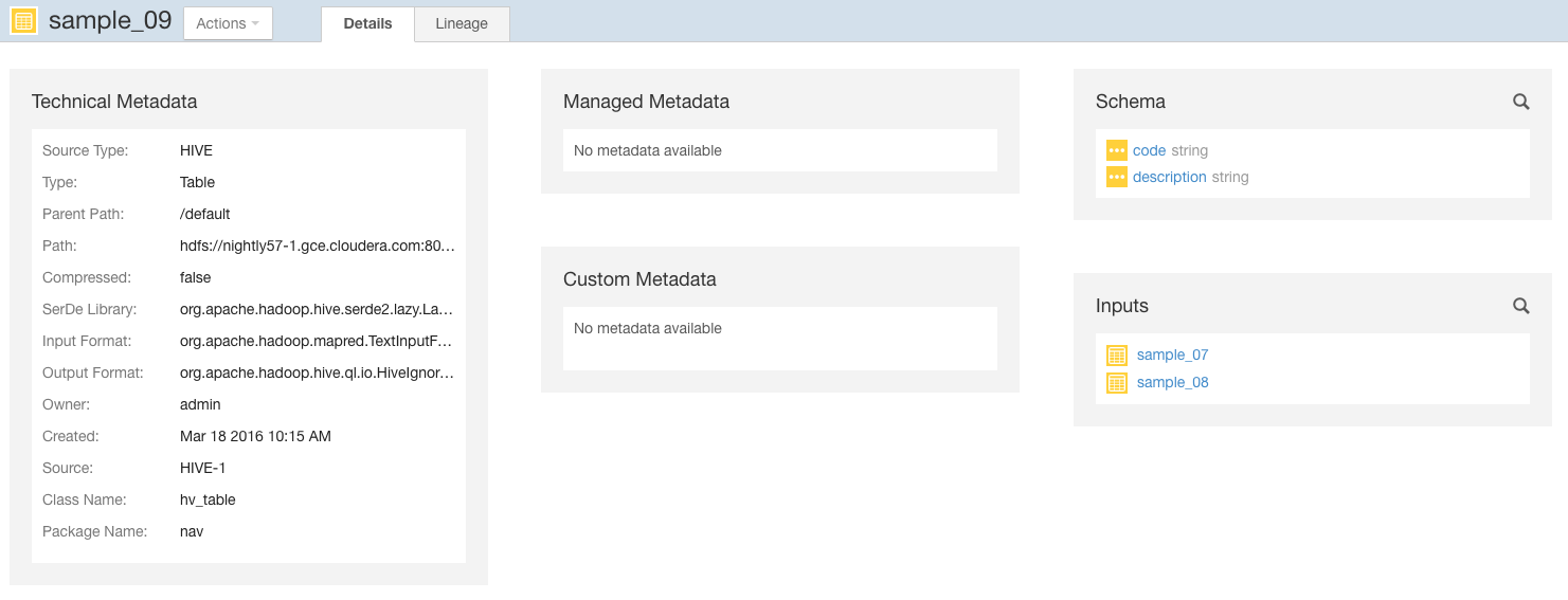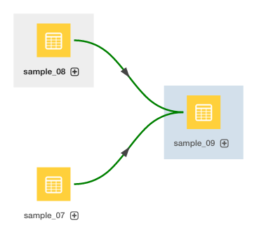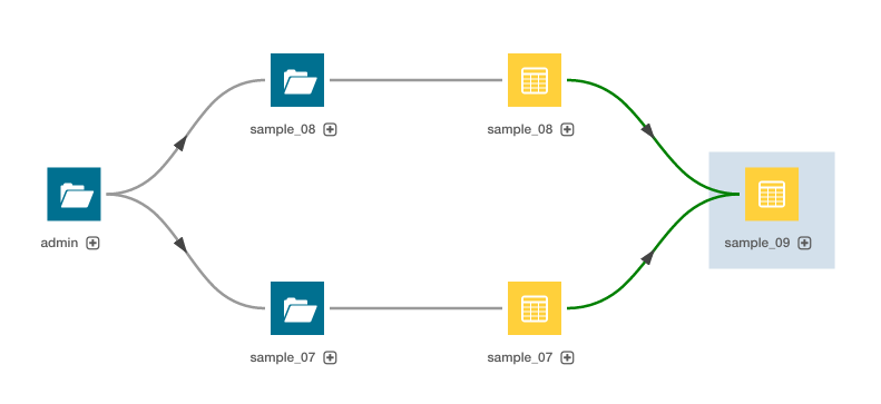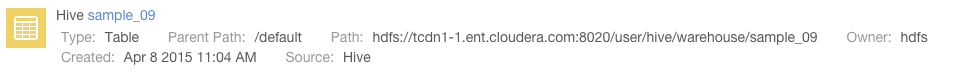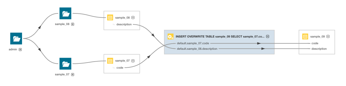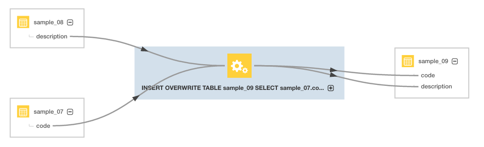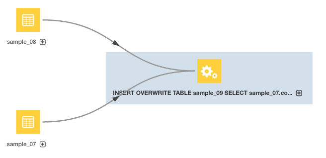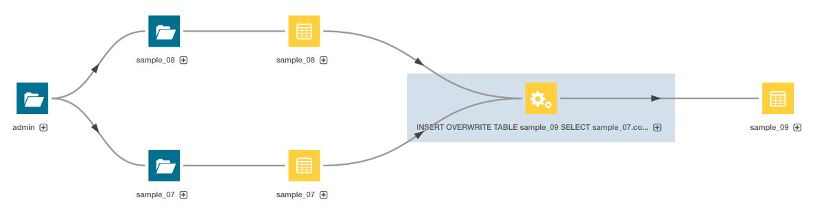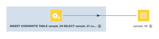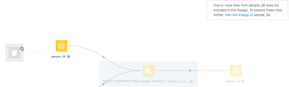 3. Click the Lineage tab. For example, clicking the Lineage tab for the sample_09 table displays the following lineage diagram:
