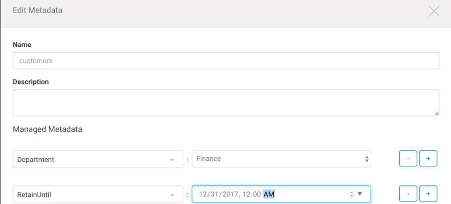 Note: The Key-Value Pairs field is used for specifying custom metadata only. Managed metadata