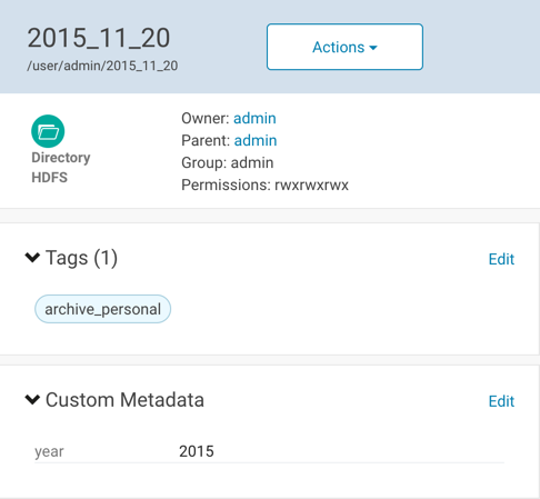In the following example, the tag archive_personal and the property year with value 2015 have been added to the file 2015_11_20: