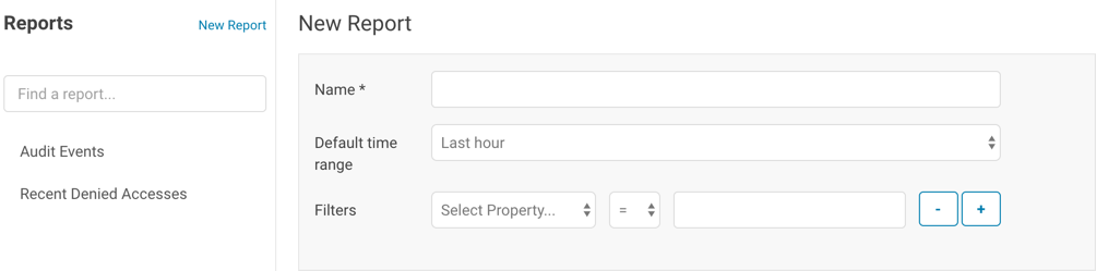These two default reports are starting points. Use the Audit Report and define filters to create new reports can be created by defining and applying filters to fine-tune the selected results. Give the filtered report specifications for future use, and export (download) any report to CSV and JSON file formats.