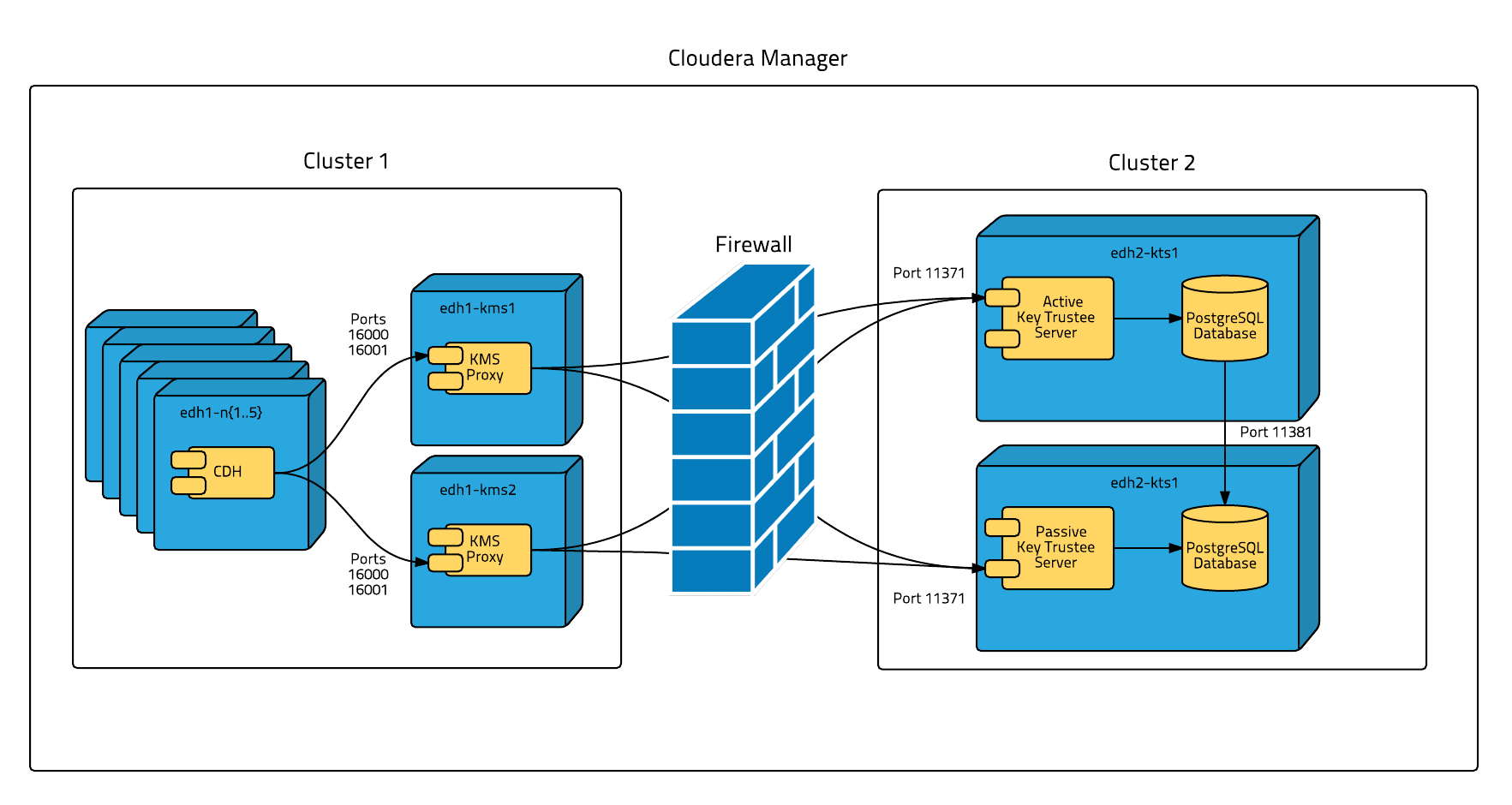 - You can restart your EDH cluster without restarting Key Trustee Server, avoiding interruption to other clusters or clients that use the same Key Trustee Server instance.
