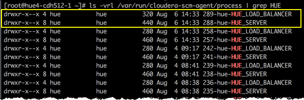 ls -vrl /var/run/cloudera-scm-agent/process | grep HUE