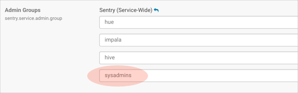 <property> <name>sentry.service.admin.group</name> <value>hue,hive,impala,sysadmins</value> </property>