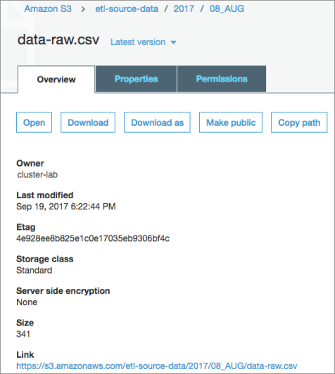 • See S3 Properties for more information about entity properties displayed for Amazon S3 objects.