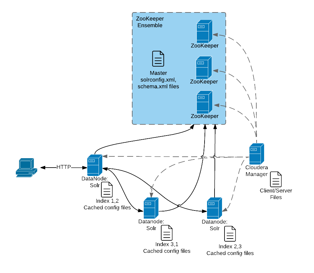 Each Cloudera Search server can handle requests independently. Clients can send requests to index documents or perform searches to any Search server, and that server routes the request to the correct server.